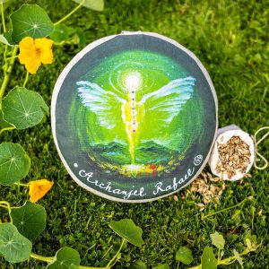 Ľanový meditačný yoga vankúš Archanjel Chamuel s energetickou podporou: