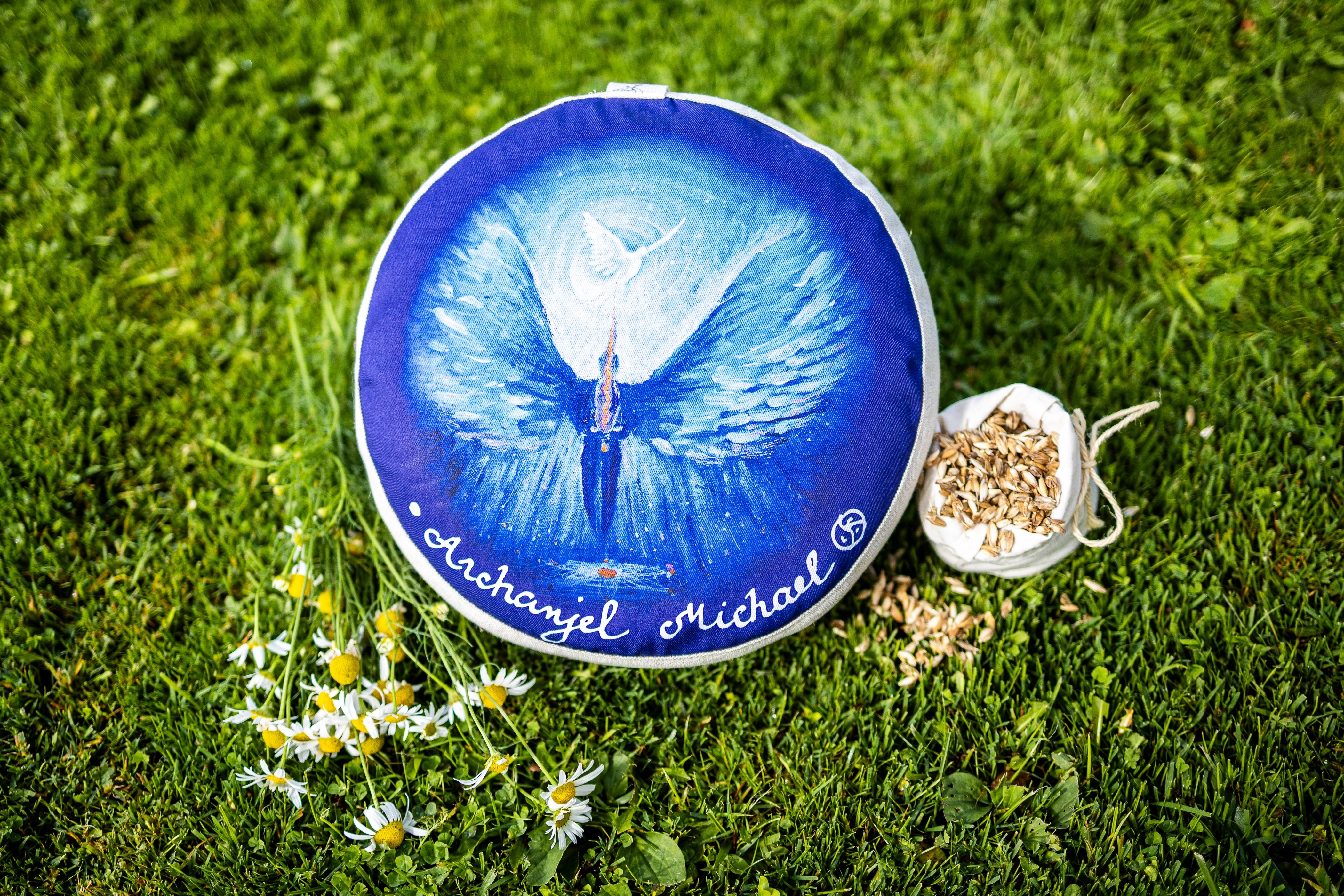 Ľanový meditačný yoga vankúš Archanjel Michael s energetickou podporou: